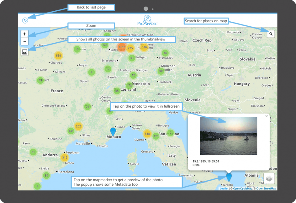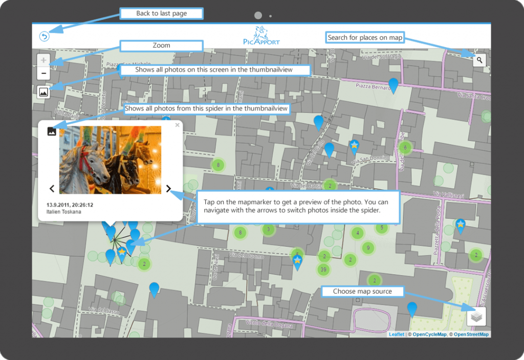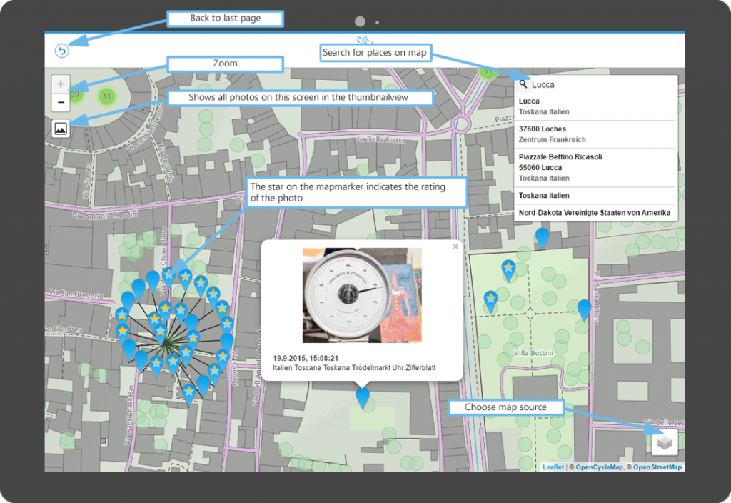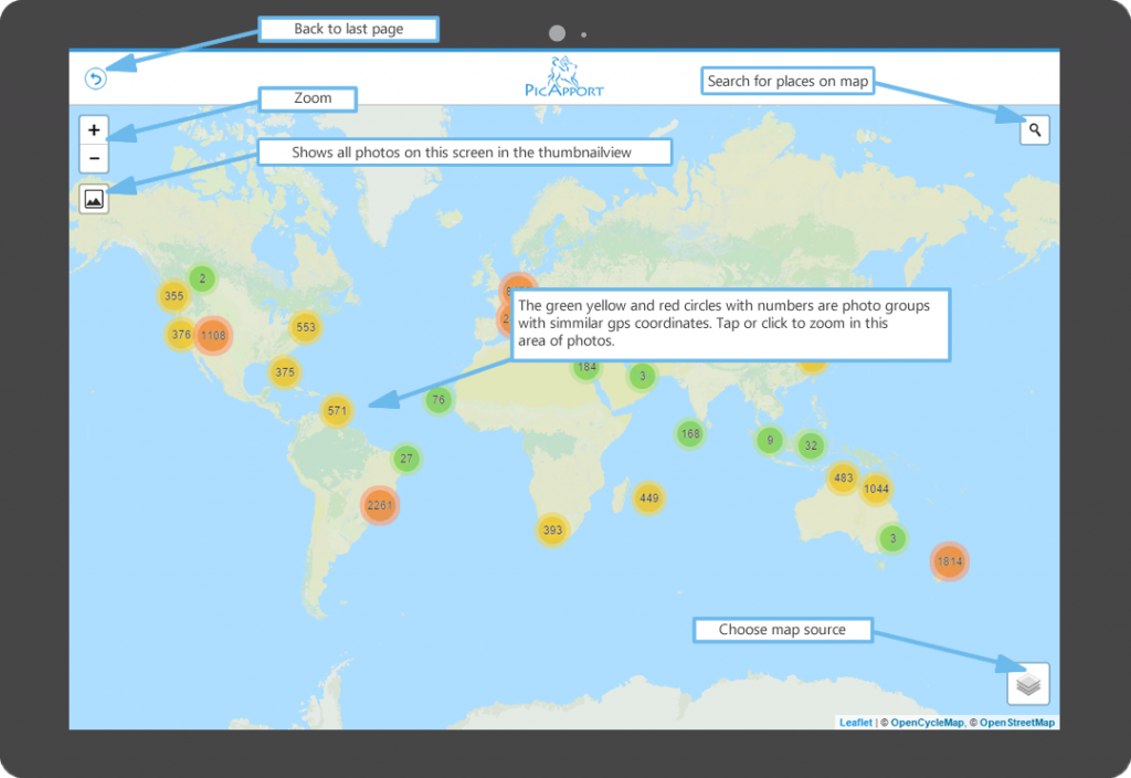 Map view (#map) At the end of this page you’ll find a short introduction video Geolocations - world map overview Geolocations - set GPS coordinates (since version 7.0) Geolocations - map sources Geolocations - photo preview Geolocations - photos with same gps coordinates Geolocations - photo preview Geolocations - Video-Guide (intro in German but also understandable for non German speakers)
