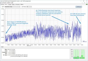 -Xms4048m -Xmx4048m -XX:MaxDirectMemorySize=2g Even if these values work fine for 10 users, | Oracle java version „1.8.0_111“ Java(TM) SE Runtime Environment (build 1.8.0_111-b14) Java HotSpot(TM) 64-Bit Server VM (build 25.111-b14, mixed mode) | Windows 10 pro 64bit | 6.3.00 | 1.000.000 | 10 | All 1.000.000 photos have been stored on a USB3 connected magnetic harddisk.
