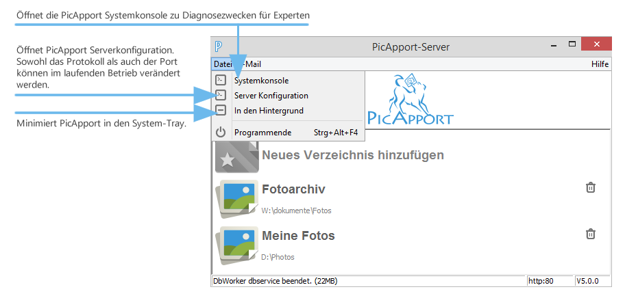 PicApport - Server Benutzeroberfläche