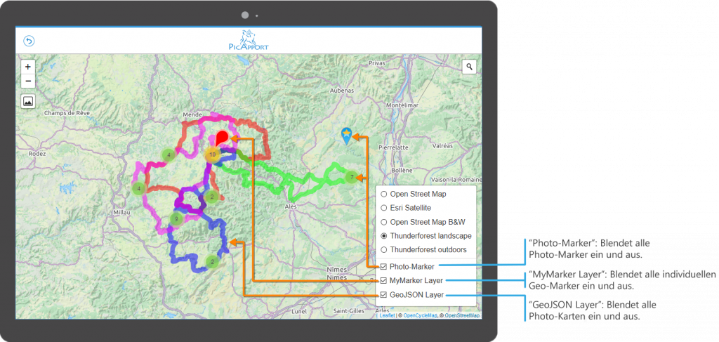 Zur bebilderten Einführung nebst Online-Demo geht es hier: Karten, Trails und Geojson-Dateien mit PicApport erstellen und nutzen