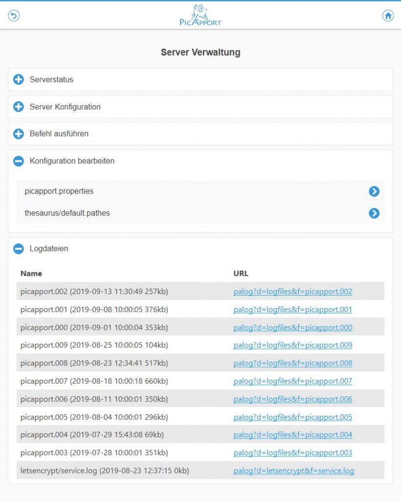 Um die Verwaltung eines installierten PicApport-Servers noch weiter zu vereinfachen Haben wir in der Web-GUI eine neue Seite eingebaut.