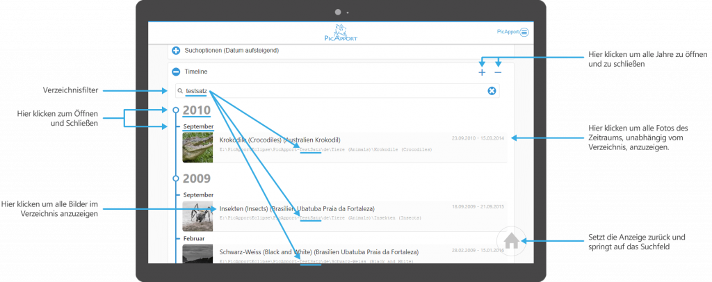 Zur bebilderten Doku geht es hier: Fotos finden mit PicApport#Timeline